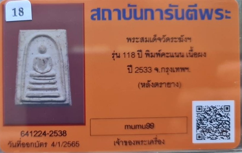 ## สมเด็จวัดระฆัง อนุสรณ์ 118ปี พ.ศ.2533 พิมพ์คะแนน "พระสวยเดิมไม่ผ่านการใช้.หลังปั้มตรายาง...พร้อมบัตรรับรอง.""รับประกันแท้ตลอดฃีพและแท้ตามมาตรฐานสากล....... อนาคตดี ถูกๆเลยครับ.... ราคายังไม่แรง....ไปออกต่อได้เลยครับ...แท้...ถูก...ดี...น่าเก็บมาก.. |