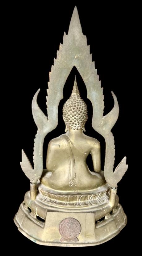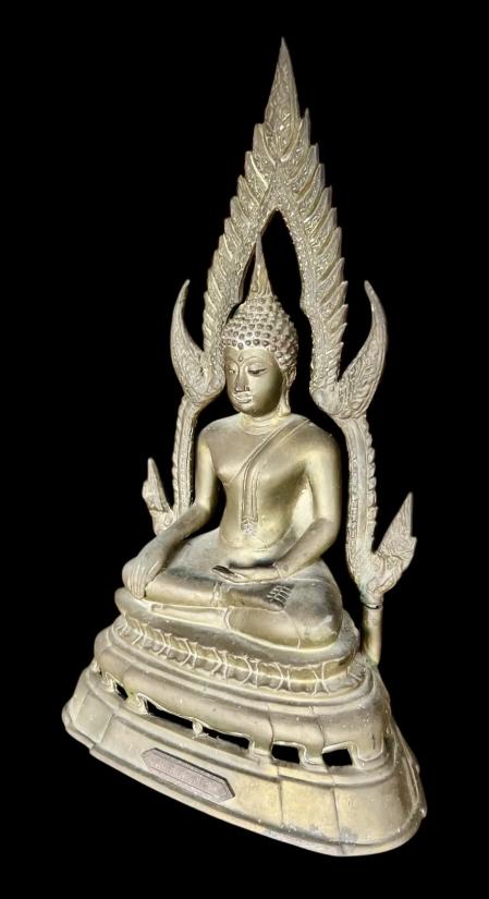 พระบูชาพระพุทธชินราชสวยๆ สำนักพุทธประทีป ก้นปั้มตรายาง ตอกหมายเลข 2 ด้านหลังแปะป้ายสงวนสิทธิ์ อกเลาวิหารหลวงพ่อชินราช พิษณุโลก เนื้อโลหะทองเหลือง 2 ถอด ซุ้มถอดได้ครับ หน้าตักขนาด 5 นิ้ว ราคาเบาๆ