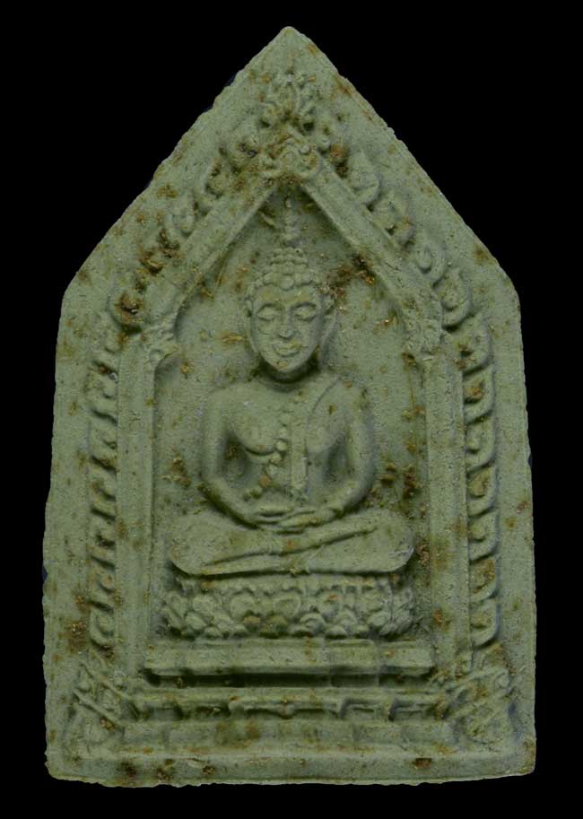 พระพุทธสิหิง เนื้อเขียวพิมพ์เล็ก โรยผงตะไบทอง เกษา สภาพสวย