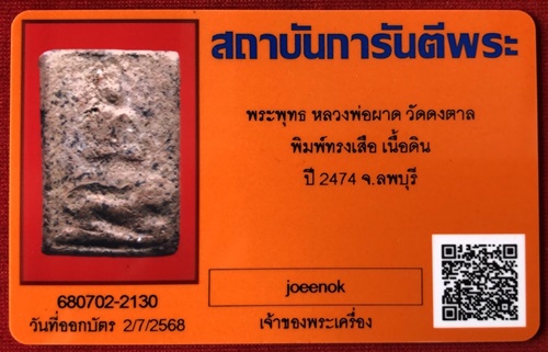 พระพุทธ หลวงพ่อผาด วัดดงตาล พิมพ์ทรงเสือ เนื้อดิน ปี 2474 จ.ลพบุรี สภาพสวยเดิมๆ มาพร้อมบัตรรับรองครับ