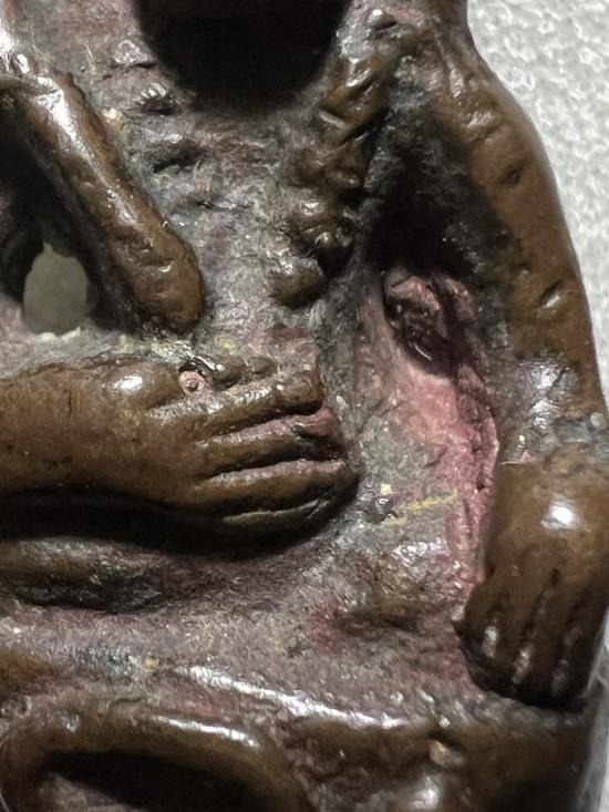 พระอุปคุตหน้าฤาษีถือดอกบัว หลวงพ่ออิ่ม วัดหัวเขา จ.สุพรรณบุรี เนื้อทองผสม (เนื้อแดง)