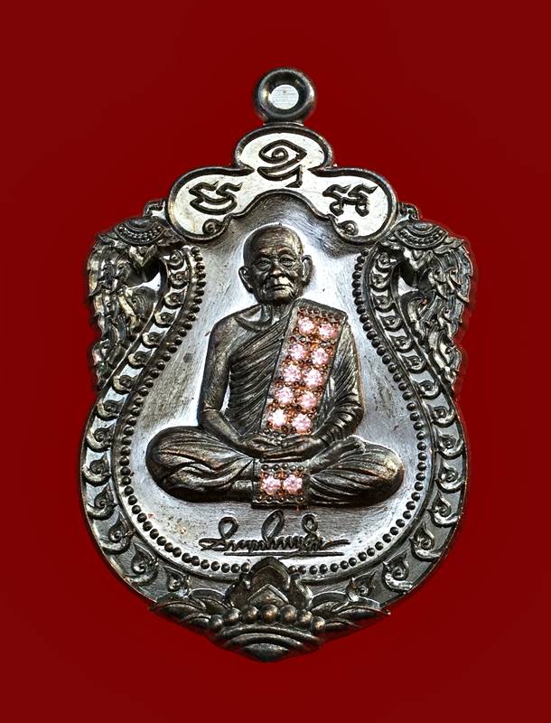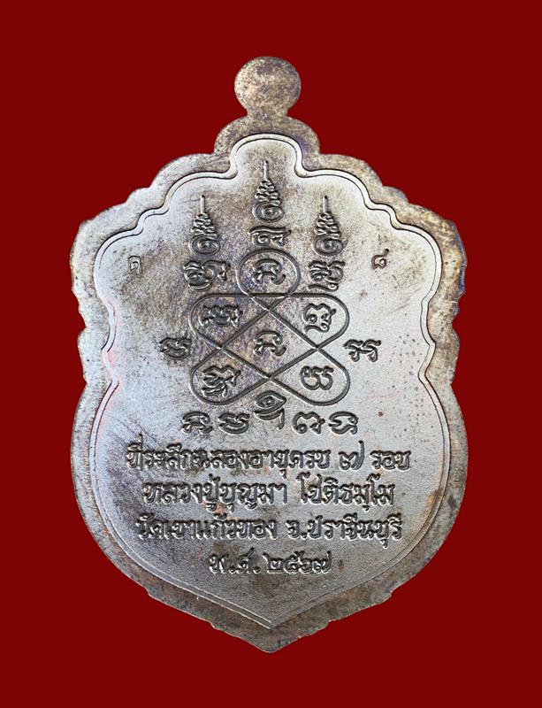 +!!เคาะเดียวllดง ตลอดสาย!!+ (เลข 8) เหรียญเสมาลายเซ็น (7 รอบ) หลวงปู่บุญมา สำนักสงฆ์เขาแก้วทอง (เนื้อทองแดงรมดำ ฝังพลอยชมพูเต็มสังฆาฎิ เลขสวย 8) สร้างแค่ 30 เหรียญ พร้อมกล่องเดิมครับ |