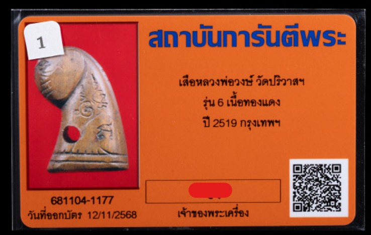 เสือหลวงพ่อวงษ์ วัดปริวาสฯ รุ่น 6 เนื้อทองแดง ปี2519 จ.กรุงเทพฯ เคาะเดียว
