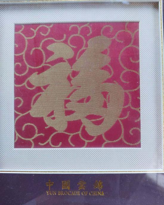 กรอบรูปผ้าไหมจีนหนานจิงที่เรียกว่า "หยุนจิน" (Yunjin) หรือผ้าทอเมฆ ซึ่งเป็นงานหัตถกรรมแบบดั้งเดิมของจีนที่มีชื่อเสียงในด้านฝีมืออันประณีตและมีความสำคัญทางวัฒนธรรม