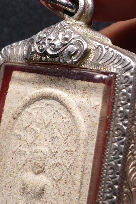 2500.- พระสมเด็จปรกโพธิ์ หลังพระแม่ธรณี พิมพ์เล็ก เนื้อผงทรายเสก ปี 2543 ออกวัดซับลำไย พร้อมตลับเงินแท้งานสั่งทำ หลวงปู่หมุนเสก