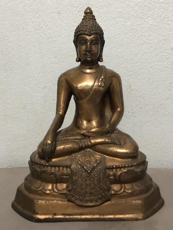 พระบูชา ยุครัชกาล ตอนปลาย เนื้อทองเหลืองผิวมันปู หน้าตักพระ4.5 นิ้ว