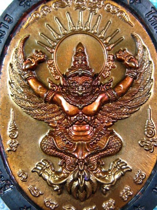 เหรียญครุฑ โคตรอำนาจ มหาเศรษฐี หลวงปู่อิ่ม วัดทุ่งนาใหม่ จ.นครศรีธรรมราช เนื้อทองแดงรมดำ สอดไส้ทองเหลือง ๙ รอบ (---A49---)