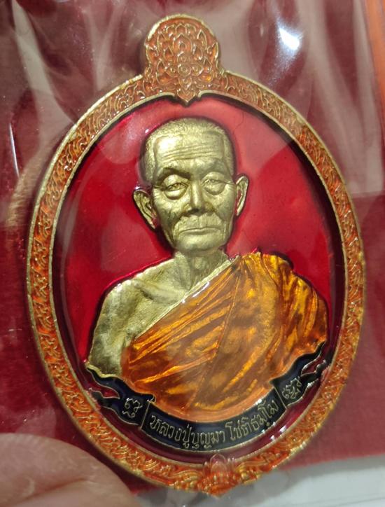 เหรียญหลวงปู่บุญมา โชติธัมโม รุ่นกันภัย เนื้อทองฝาบาตลงยา สวยมาก ปี 2564