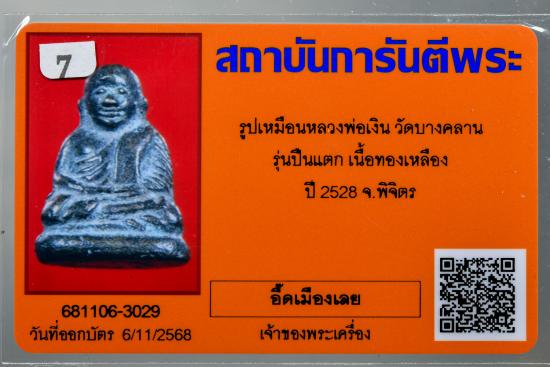 พระรูปหล่อโบราณ หลวงพ่อเงิน วัดบางคลาน รุ่นปืนแตก เนื้อเก่า พ.ศ.2528 พร้อมบัตรรับรอง++**7