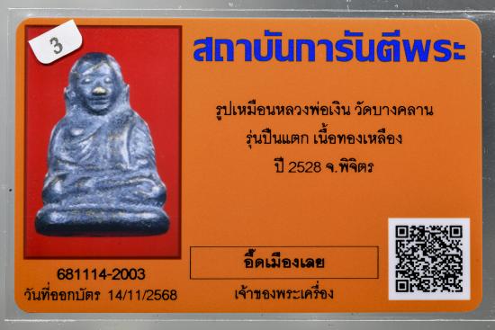 พระรูปหล่อโบราณ หลวงพ่อเงิน วัดบางคลาน รุ่นปืนแตก เนื้อเก่า พ.ศ.2528 พร้อมบัตรรับรอง++**3