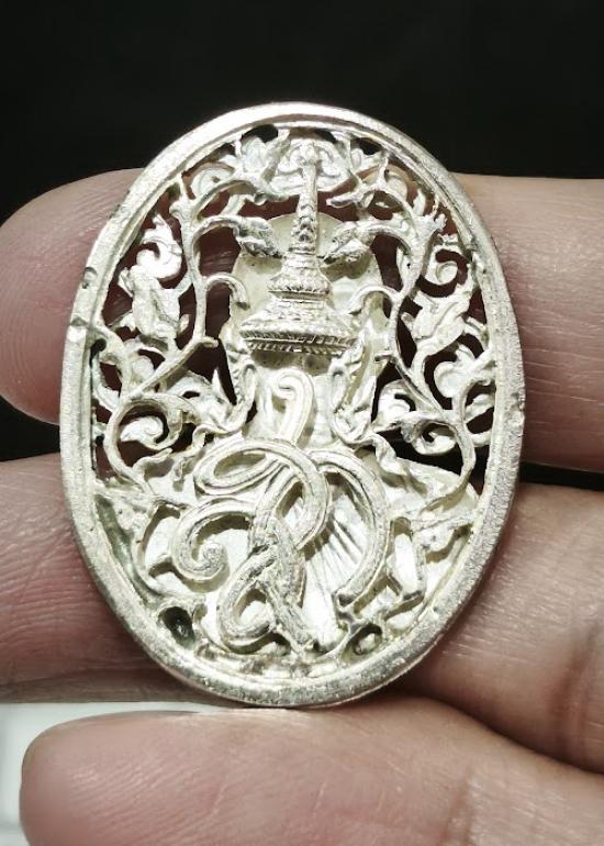 เหรียญ ฉลุ สก.หลวงพ่อคูณ ปริสุทโธ วัดบ้านไร่ หลังลายฉลุ พระนามาภิไธย สก.เนื้อเงินหน้ากากทองคำเเท้