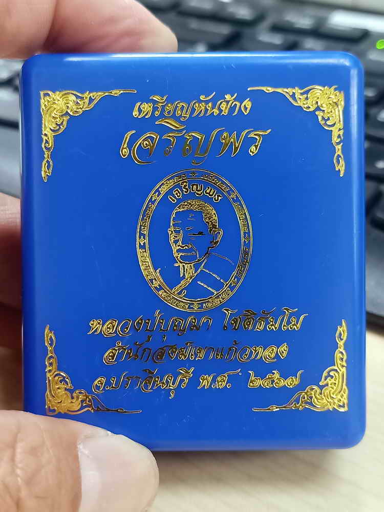 วัดใจ 100 เหรียญหันข้าง เจริญพร หลวงปู่บุญมา สำนักสงฆ์เขาแก้วทอง จ.ปราจีนบุรี 2567 กะไหล่เงิน ลงยาพื้น จีวร ขอบ หมายเลข 8 สร้าง 20 กล่องเดิม |