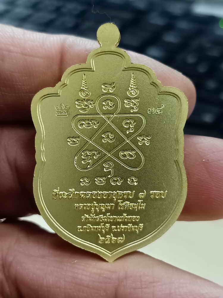 วัดใจ 100 เหรียญเสมาเสือคาบแก้ว 7 รอบ หลวงปู่บุญมา สำนักสงฆ์เขาแก้วทอง จ.ปราจีนบุรี 2567 ชุบทองโบราณ ลงยาขอบแดง หมายเลข 34 สร้าง 169 กล่องเดิม |