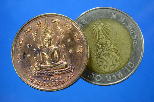 เหรียญพระพุทธชินราช หลังพระนเรศวรมหาราช รุ่นวังจันทร์ ปี 48 เนื้อทองแดง จ.พิษณุโลก สวยครับ |