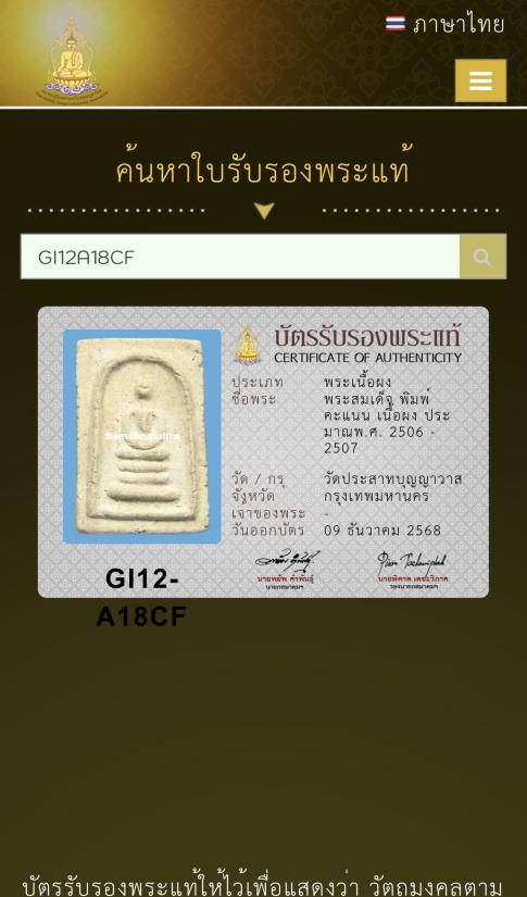 พระสมเด็จพิมพ์คะแนน เนื้อผง วัดประสาทบุญญาวาส กรุงเทพ พร้อมบัตรรับรองสมาคมฯ