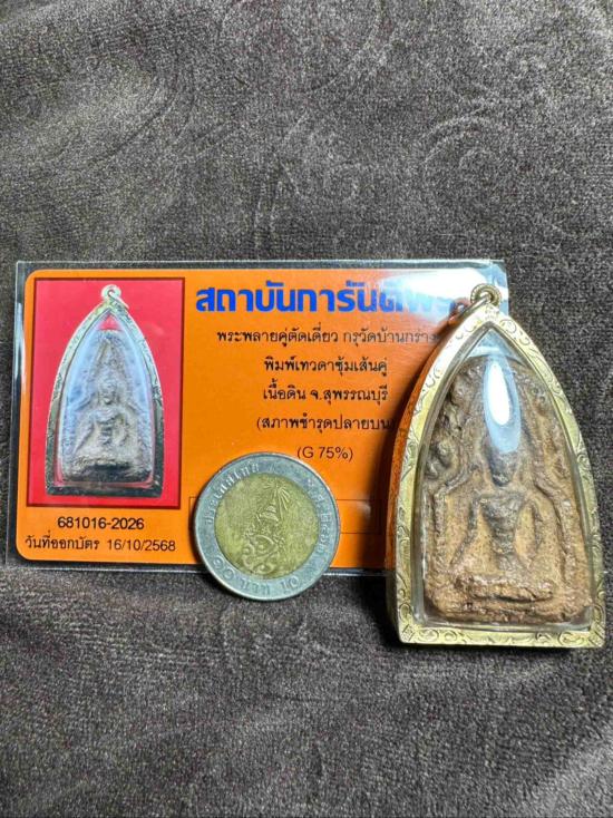 รายละเอียด ขุนแผนพรายคู่ตัดเดี่ยวบ้านกร่างพิมพ์เทวดาซุ้มเส้นคู่สภาพบัตรออกชำรุดปลายบนไม่มีทองจะถอดแล้วครับพระอย่างเดียว