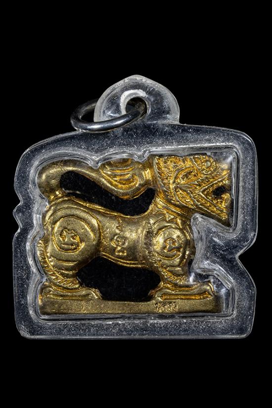สิงห์สุพรรณรุ่นแรก หลวงปู่นาม วัดน้อยชมภู่ จ.สุพรรณบุรี เนื้อทองเหลือง ตอกโค๊ด + เลข เลี่ยมกันน้ำ (เคาะเดียวแดง)