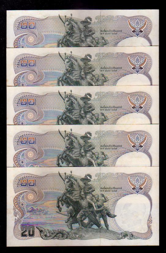 ## ธนบัตร 20 บาท ## พระเจ้าตาก ## เรียงเลข 5 ฉบับ ## ไม่ผ่านการใช้ ## แกะแหนบ ##