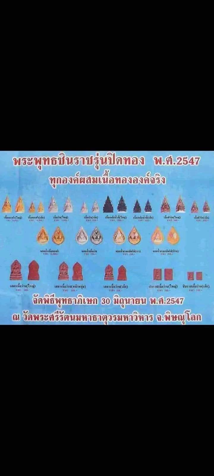 พระพุทธชินราชเนื้อทองคำ วัดพระศรีมหาธาตุ จ.พิษณุโลก ปี พ.ศ.2547 พิมพ์เล็ก เลี่ยมทองพร้อมใช้
