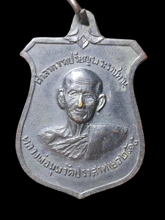 เหรียญหน้าบัน หลวงพ่อมุม วัดปราสาทเยอ จ.ศรีสะเกษ ปี2515 เนื้อทองแดงรมดำ