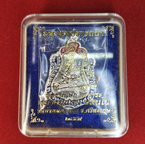 (1 ใน 399) เหรียญเสมามหาสมปรารถนา หลวงปู่แสน วัดบ้านหนองจิก จ.ศรีสะเกษ เนื้อเงินบริสุทธิ์ลงยา