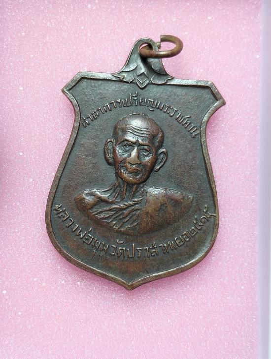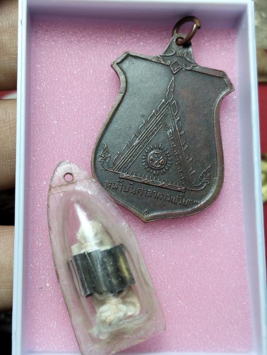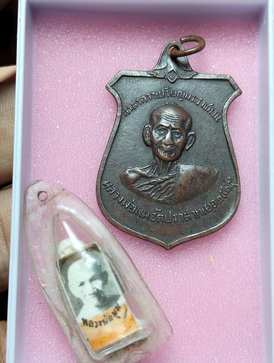 เหรียญหน้าบันหลวงพ่อมุม วัดปราสาทเยอร์เหนือและรูปถ่ายหลังตะกรุดพร้อมเลี่ยม