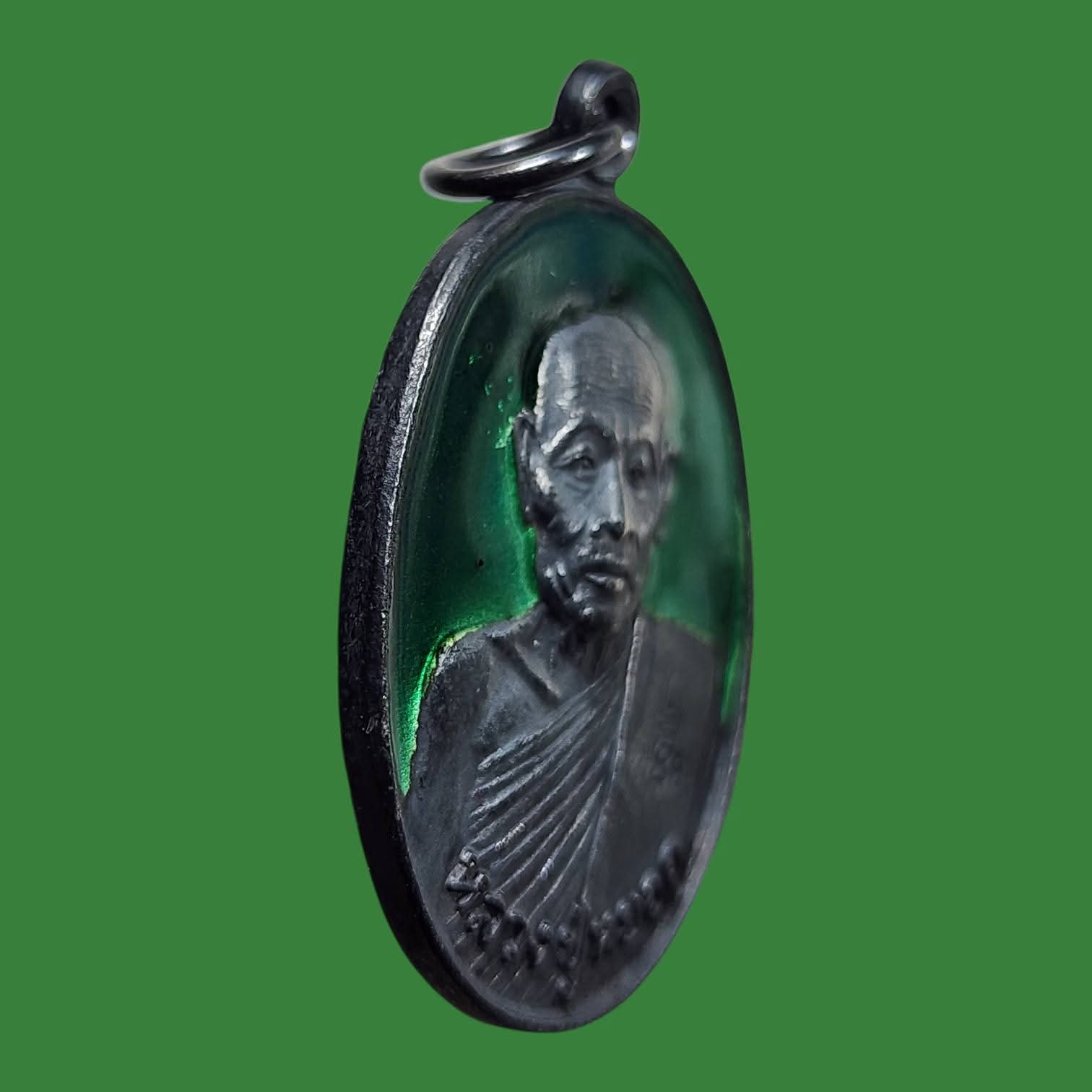 เหรียญเงินลงยา หลวงพ่อหยอด วัดแก้วเจริญ พ.ศ.2534 สภาพสวยตามรูป