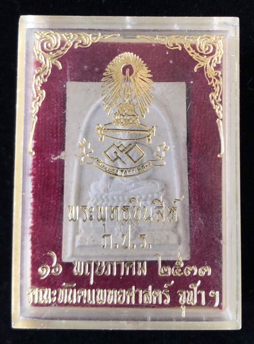 พระพุทธชินสีห์ ภปร. ทันโตเสฏโฐ พิมพ์ใหญ่ 50ปี คณะทันตแพทย์จุฬาฯ ปี 2533 (มีผงพระทนต์ในหลวง) มีพลอยด้านหลัง สภาพสวย มาพร้อมกล่องเดิม ครับ