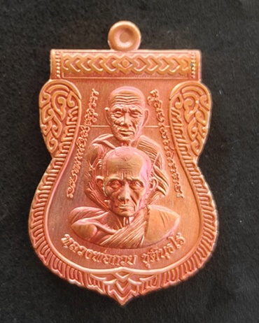 เหรียญพุทธซ้อนเหนือดวง เนื้อทองแดง ด้านหน้าหลวงปู่ทวดและหลวงพ่อกวย หลังท้าวเวสสุวรรณ โดยมีหลวงพ่อเล็ก วัดท่าขนุน ศิษย์หลวงพ่อฤาษีลิงดำ วัดท่าซุง อธิฐานจิต |