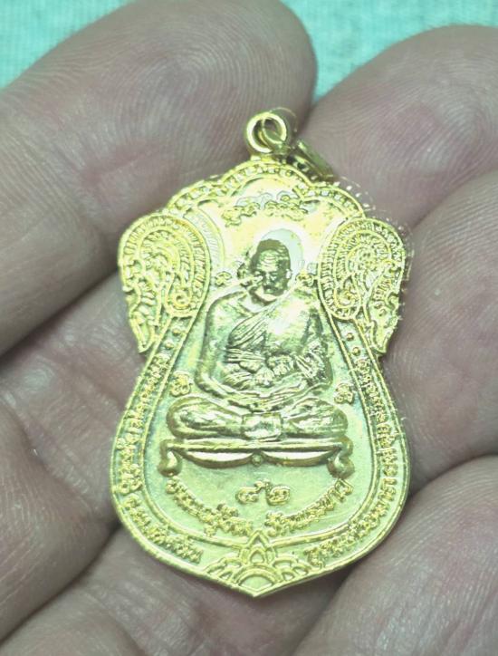 เหรียญปลอดภัย หลวงปู่ทิม วัดพระขาว หลังหลวงปู่มี วัดมารวิชัย จ.อยุธยา เนื้อกะไหล่ทอง ปี พ.ศ. 2538