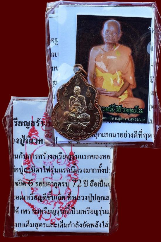 *** เคาะเดียวแดง ทุกรายการ *** เหรียญสร้างบารมี รุ่นแรก หลังยันต์พระนารายณ์ เนื้อทองแดง หลวงปู่นิเวศน์ วัดทุ่งกระเจ็ด สุพรรณบุรี ปี 2552 มีซองจากวัด สภาพตามรูป (No.1)
