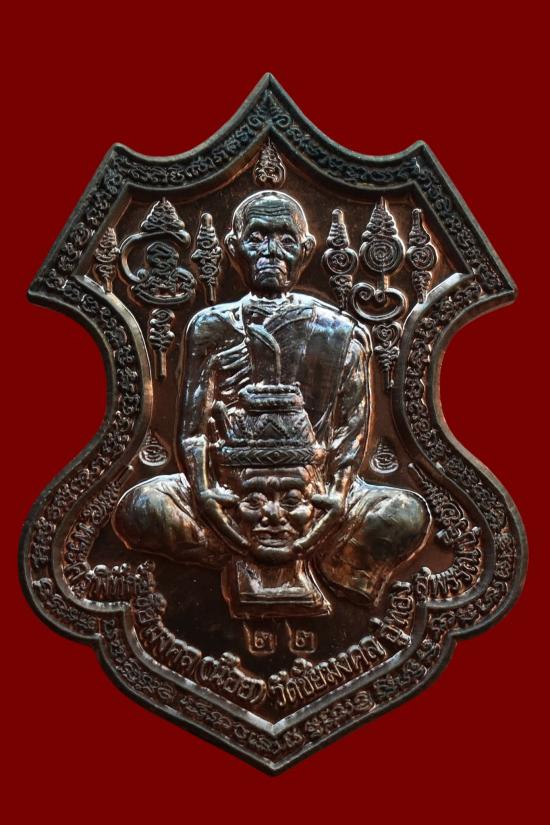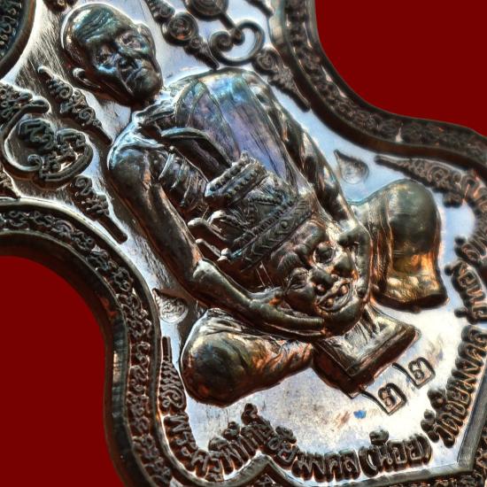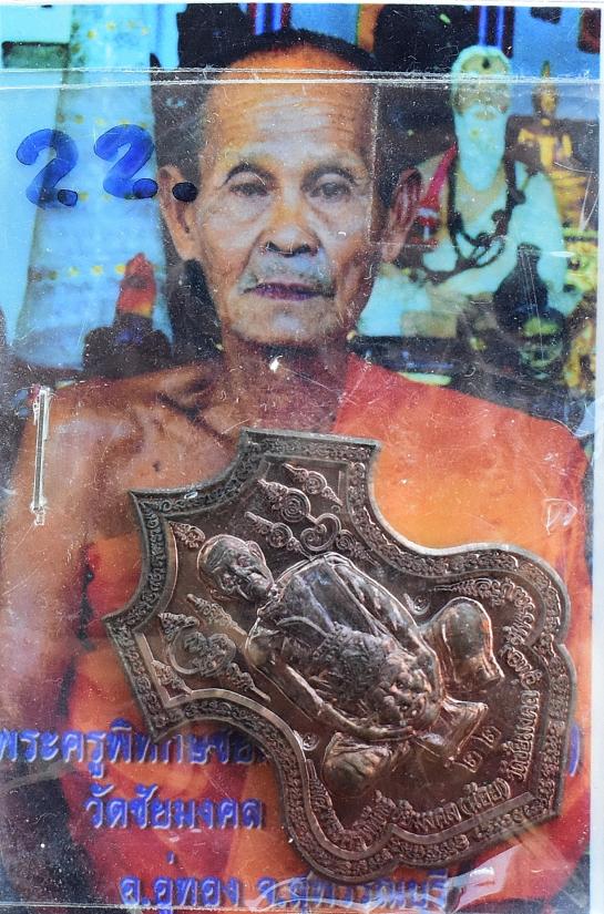*** เคาะเดียวแดง ทุกรายการ *** เหรียญยกครูหลังยันต์ รุ่นแรก เนื้อนวะ เลขสวย 22 พระครูน้อย วัดชัยมงคล สุพรรณบุรี ปี 2556 มีซองจากวัด สภาพตาม