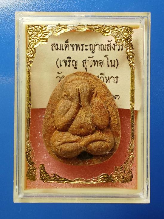 พระปิดตายันต์ดวงเล็ก หรือยันต์ดวงสุกิตติมา เนื้อผงเกสร ตังอิ๊วประทุ สอดตะกรุดเงิน หลังพระเกศา สมเด็จพระญาณสังวร(เจริญ สุวัฑฒโน ปธ.๙) พิธีพุทธาภิเษก ณ พระอุโบสถคณะรังสี วัดบวรนิเวศวิหาร ๒ ตุลาคม ๒๕๒๓ หลวงปู่โต๊ะ วัดประดู่ฉิมพลี ร่วมปลุกเสก สมเด็จพระญาณสังวรฯทรงจุดเทียนชัยและประธานอธิษฐานจิต พร้อมด้วยพระคณาจารย์แห่งยุคอีกหลายรูป มีกล่องเดิมพร้อมใบฝอย เคาะเดียว