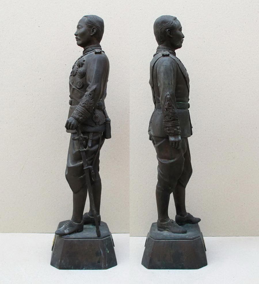 พระบรมรูปบูชาเสด็จพ่อ ร.5 ( พระปิยมหาราช ) ทรงยืนฉลองพระองค์ ใน ชุดทหารมหาดเล็กโบราณ สูงรวมฐาน 18 นิ้ว จัดสร้างโดยคุรุสภา ในวาระฉลองกรุงรัตนโกสินทร์ 200 ปี ปิยมหาราชรำลึก พ.ศ.2525