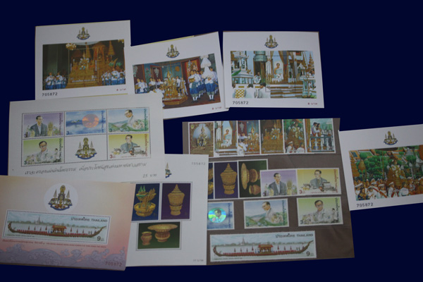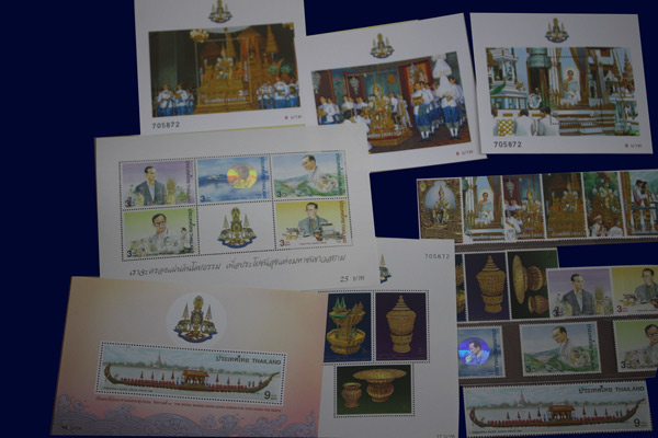 แสตมป์ชุดกาญจนาภิเเษก ไม่ผ่านใช้ มีแสตมป์ทอง 1 ดวงได้ทั้งหมดตามรูป