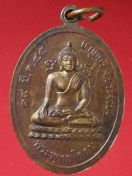 เหรียญนั้งพานหลังพระพุทธโคดม หลวงพ่อพาน สุขกาโม วัดโป่งกะสัง กุยบุรี จ.ประจวบคีรีขันธ์ ปี ๒๕๔๕ |