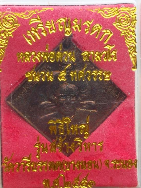 เหรียญมรดก หลวงปู่ทวด-หลวงพ่อด่วน รุ่นบูรณะโบสถ์ วัดบางนอน จ.ระนอง 2553 สภาพตามรูป ราคาเบาๆ