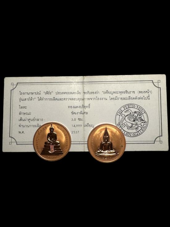 2เหรียญ ลพ.โสธร และ พุทธชินราช (สองหน้า) ทองแดงบริสุทธิ์ ขัดเงิน โรงกษาปณ์ เพิร์ธ ออสเตรเลีย ปี 2537