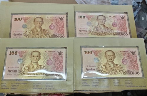 ธนบัตร 100บาท ที่ระลึก 84พรรษา รัชกาลที่9+ปก จำนวน 4 ใบ สภาพตามรูป
