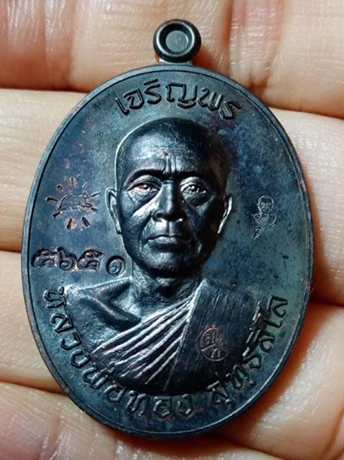 359......... เหรียญ เจริญพรบน หลวงพ่อทอง สุทธสีโล ( หลวงพ่อคูณ ปลุกเสกให้ลูกศิษย์ รุ่นแรกและรุ่นเดียว ) ออกวัดบ้านไร่ ปี 56 เนื้อ ทองแดงรมดำ สวยเดิมๆ กล่องเดิม |