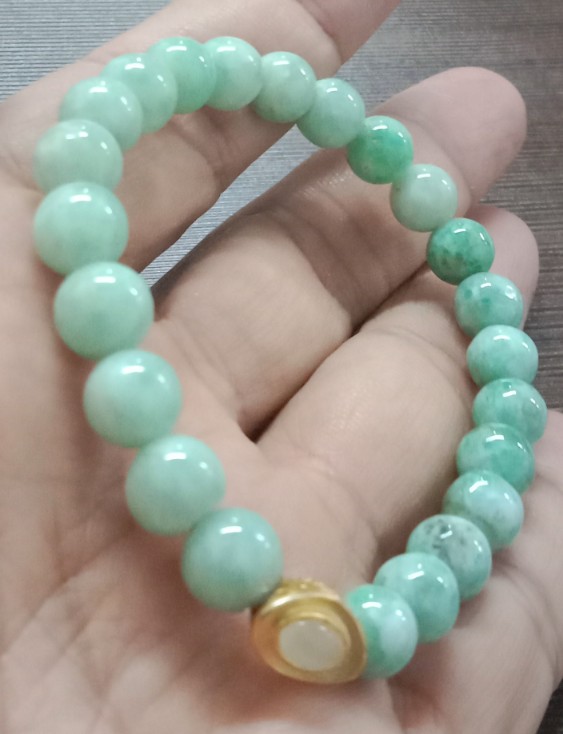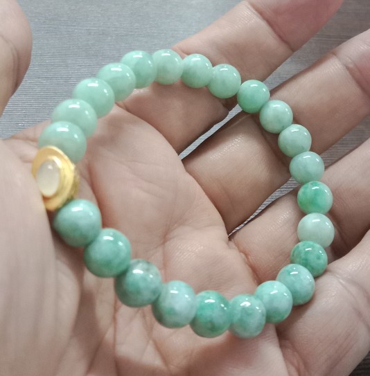 สร้อยข้อมือหยก(หยกพม่า)ขนาด8มิล/ร้อยยางยืดใส่สบาย/สินค้ามือ1/เส้นที่4 |