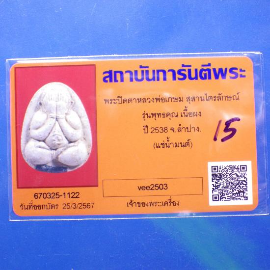 พระปิดตาแช่น้ำมนต์ หลวงพ่อเกษม รุ่นพุทธคุณ ฝังตะกรุดสังฆวานร ปี 2538. ..15.. (68.6.24 |