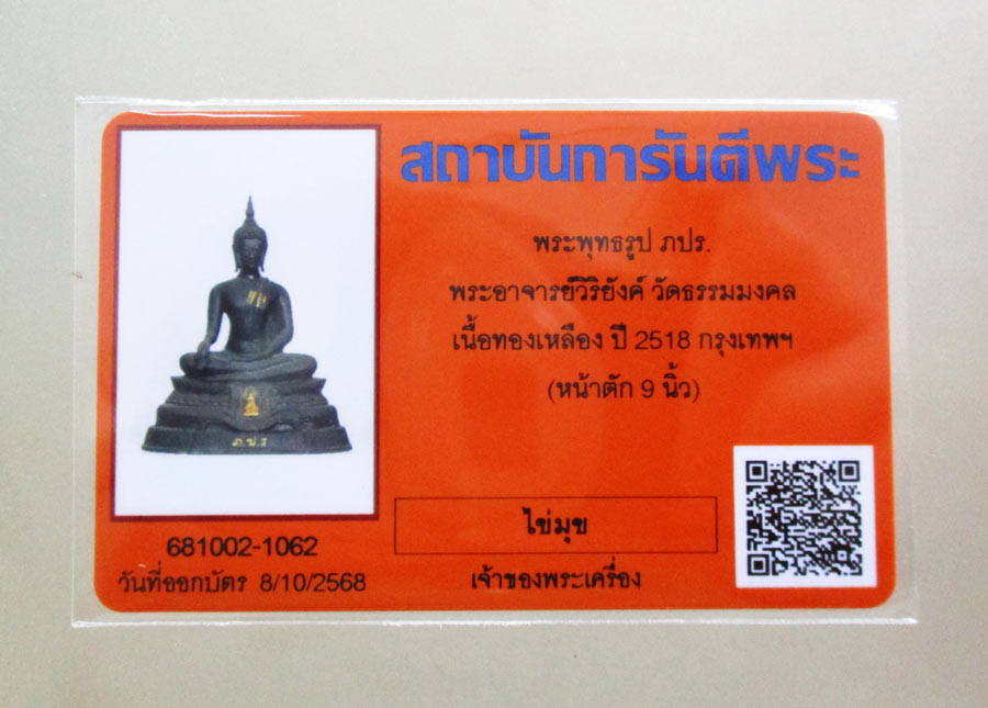 พระบูชาปางประทานพร ภปร. หลวงพ่อวิริยังค์ วัดธรรมมงคล กรุงเทพฯ พ.ศ.2518 หน้าตัก 9 นิ้ว เนื้อโลหะผิวแห้งหิ้ง พร้อมบัตรพระแท้การันตีพระ !!