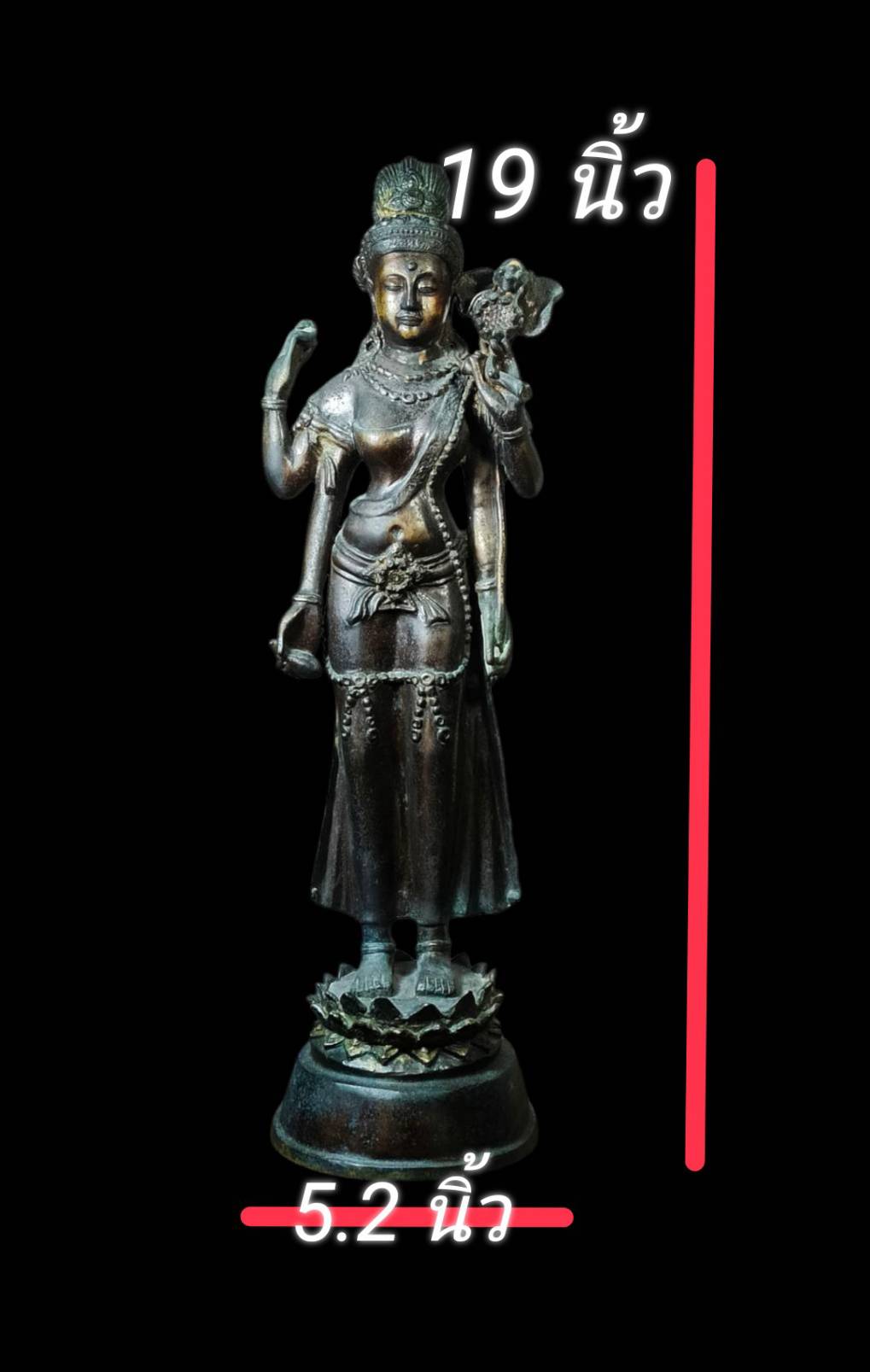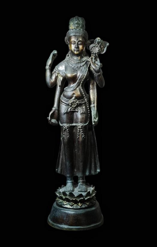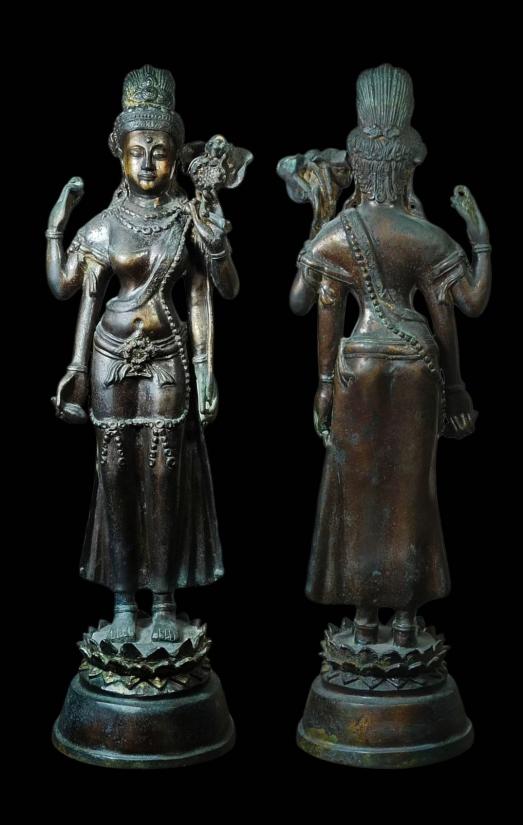 พระบูชา พระโพธิสัตว์ดารา ปางสี่กร ขนาดบูชาสูง 19 นิ้ว เนื้อโลหะ(ไม่ทราบที่) องค์ขนาดใหญ่หล่อหนาผิวผิ้งเดิมๆสวยครับ