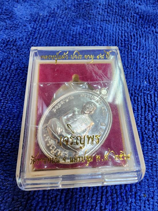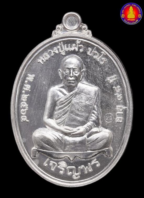 เหรียญเจริญพรล่างเนื้อเงิน หลวงปู่แผ้ว ปวโร วัดรางหมัน พร้อมกล่องเดิม สวย 100%