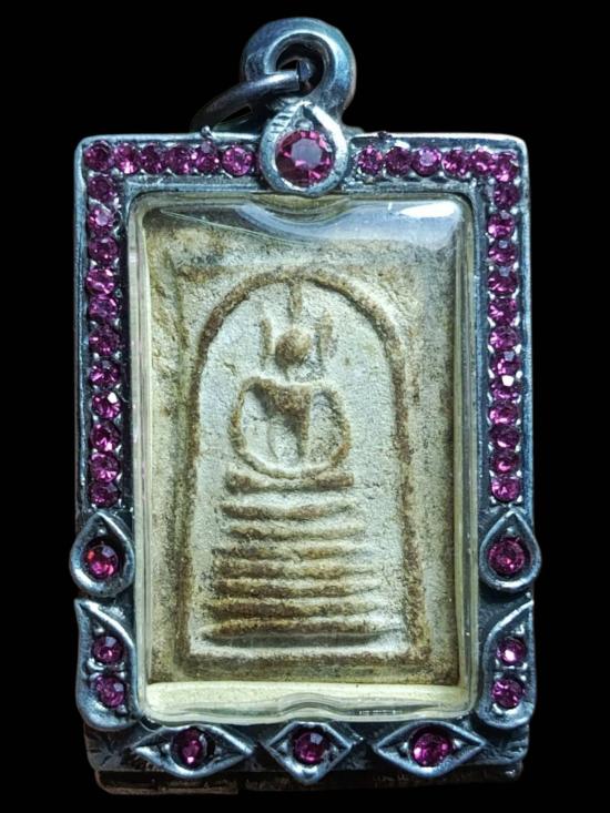 พระสมเด็จ7ชั้น กรอบเม็ดพลอยสีชมพู เคาะเดียว