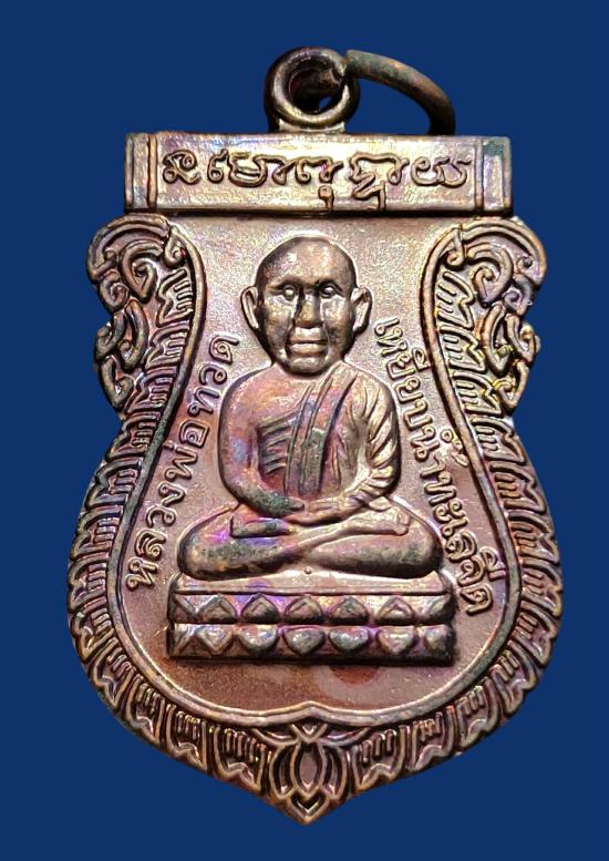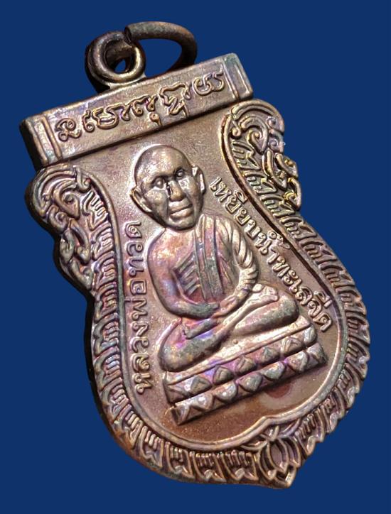 เหรียญปลดหนี้ หลวงปู่แผ้ว ปวโร หน้าหลวงปู่ทวด หลังหลวงปู่แผ้ว วัดรางหมัน ปี 2550 ผิวสวยๆ รุ้งๆ |