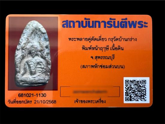 พลายคู่ตัดเดี่ยว กรุวัดบ้านกร่าง พิมพ์หน้าฤาษี เนื้อดิน จ.สุพรรณบุรี (สภาพหักซ่อมส่วนบน) มาพร้อมบัตรรับรองพระแท้ ปัจจุบันเลี่ยมพลาสติกกันน้ำรักษาผิวไว้แล้ว
