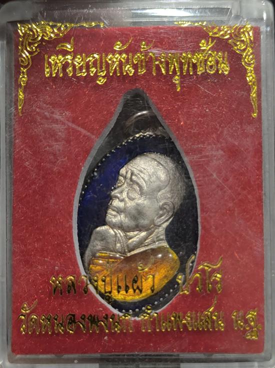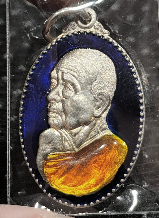 เหรียญหันข้าง เนื้อเงินลงยา ปี 2550 หลวงปู่แผ้ว ปวโร วัดรางหมัน ลงยาสีน้ำเงินหมายเลข 289
