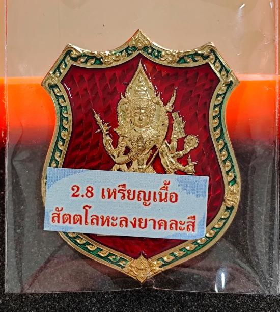 เหรียญท้าวมหาพรหม รุ่นเจ้าสัวพันล้าน(บอย ท่าพระจันทร์) เนื้อสัตตโลหะ ลงยาพื้นแดงขอบเขียว พิมพ์กรรมการ ขอบลายกนก เลขโค๊ต ๘๒ พร้อมกล่องเดิม (สร้าง 300 เหรียญ) |